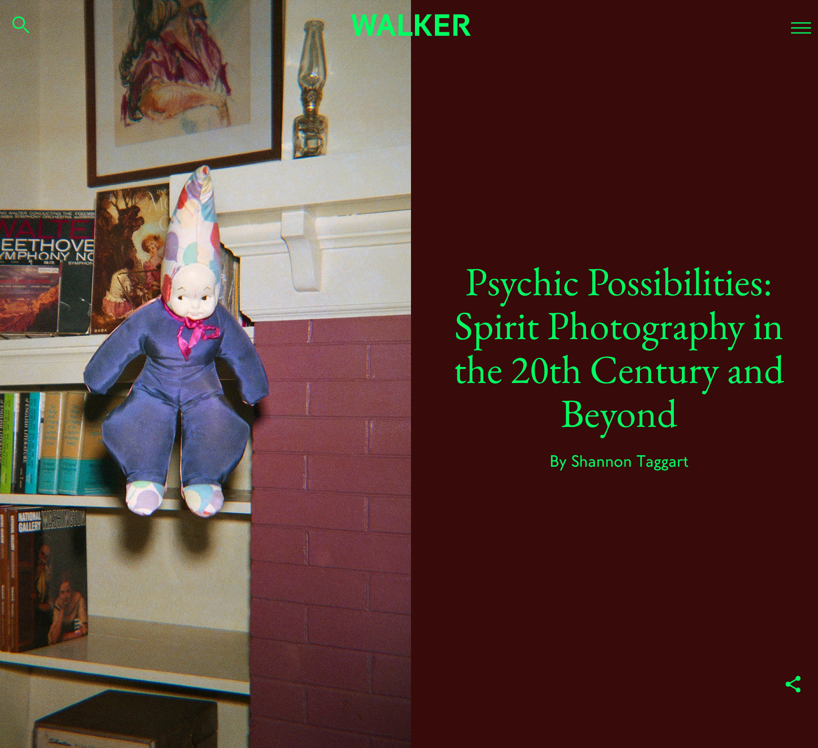 Shannon Taggart became aware of Spiritualism as a teenager, when her cousin received a message from a medium that revealed details about her grandfather's death. In 2001, while working as a photographer, she began taking pictures where that message was received—Lily Dale, New York, home to the world's largest Spiritualist community—proceeding to other such communities as England’s Arthur Findlay College. Taggart expected to spend one summer figuring out the tricks of the Spiritualist trade. Instead, Spiritualism’s mysterious processes, earnest practitioners, and neglected photographic history became an inspiration. Her project evolved into an eighteen-year journey that has taken her around the world in search of ‘ectoplasm’—the elusive substance that is said to be both spiritual and material.